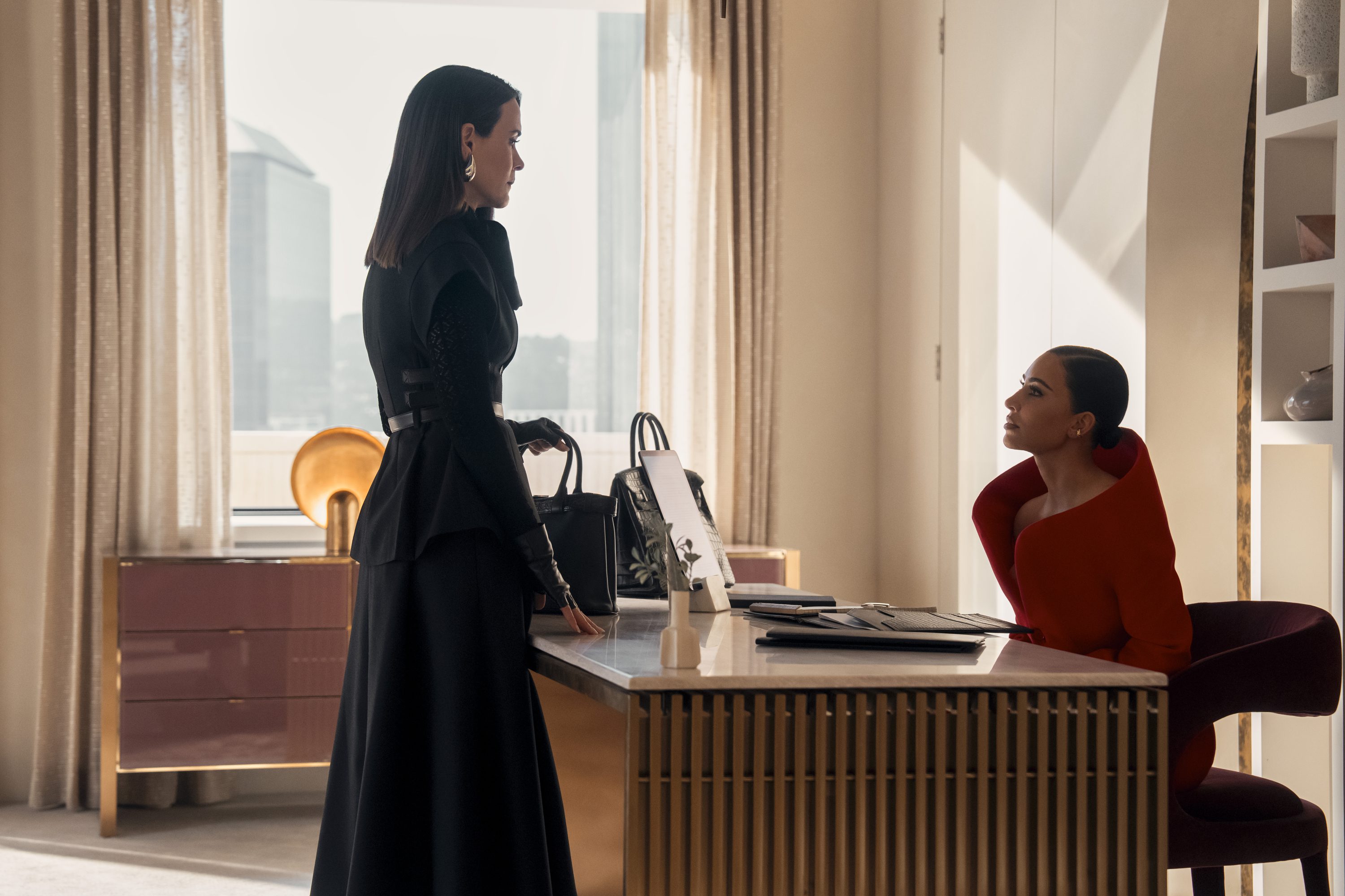 A little bit of all of it, but it came from that trauma of wanting to be loved and have this beautiful, hot, sexy man be into her. Even from a human place, what does it feel like to be desired, to be loved? It’s all that from the character’s personal place, but [she’s] also just thinking about the revenge she was setting forth. There is a want to get back or prove herself [to the other ladies], because she had to fight. Being interviewed [to join their firm], she’s having to put her own pride aside and go in there and prove herself.